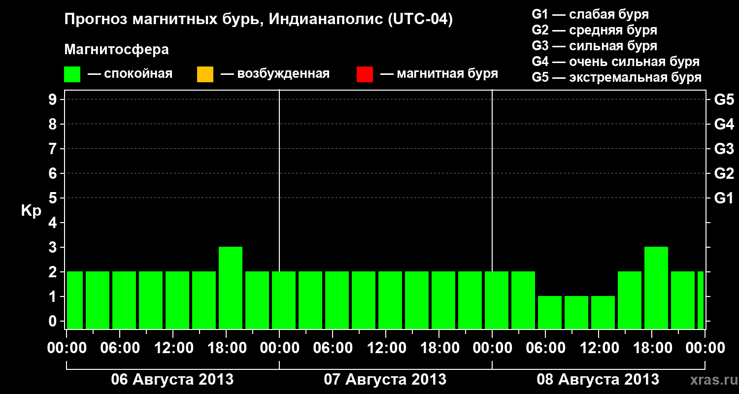 Прогноз магнитных бурь в Индианаполисе на 6 августа 2013 года