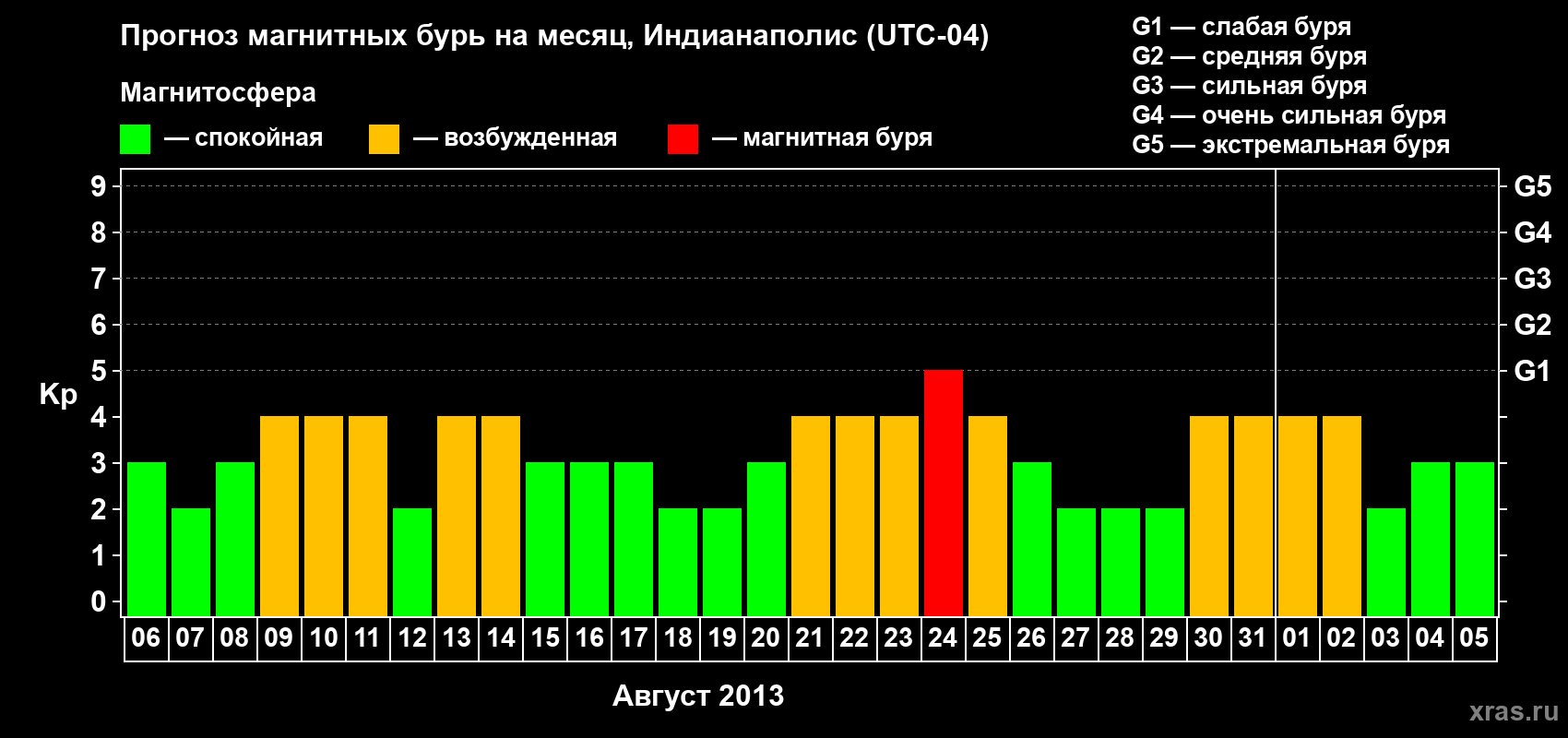 Прогноз магнитных бурь в Индианаполисе — 6 августа 2013 года