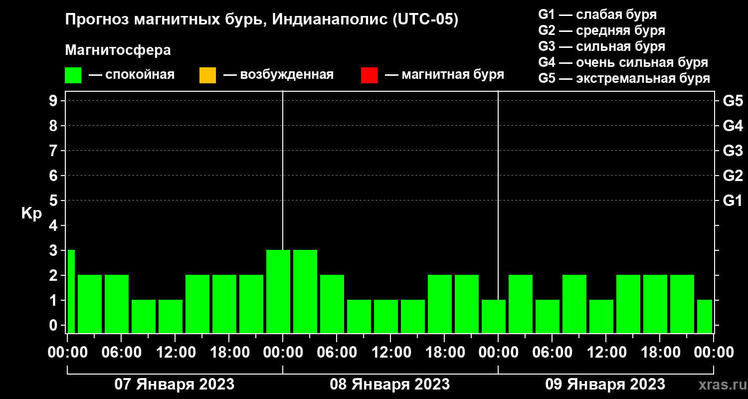 Прогноз магнитных бурь в Индианаполисе — 7 января 2023 года