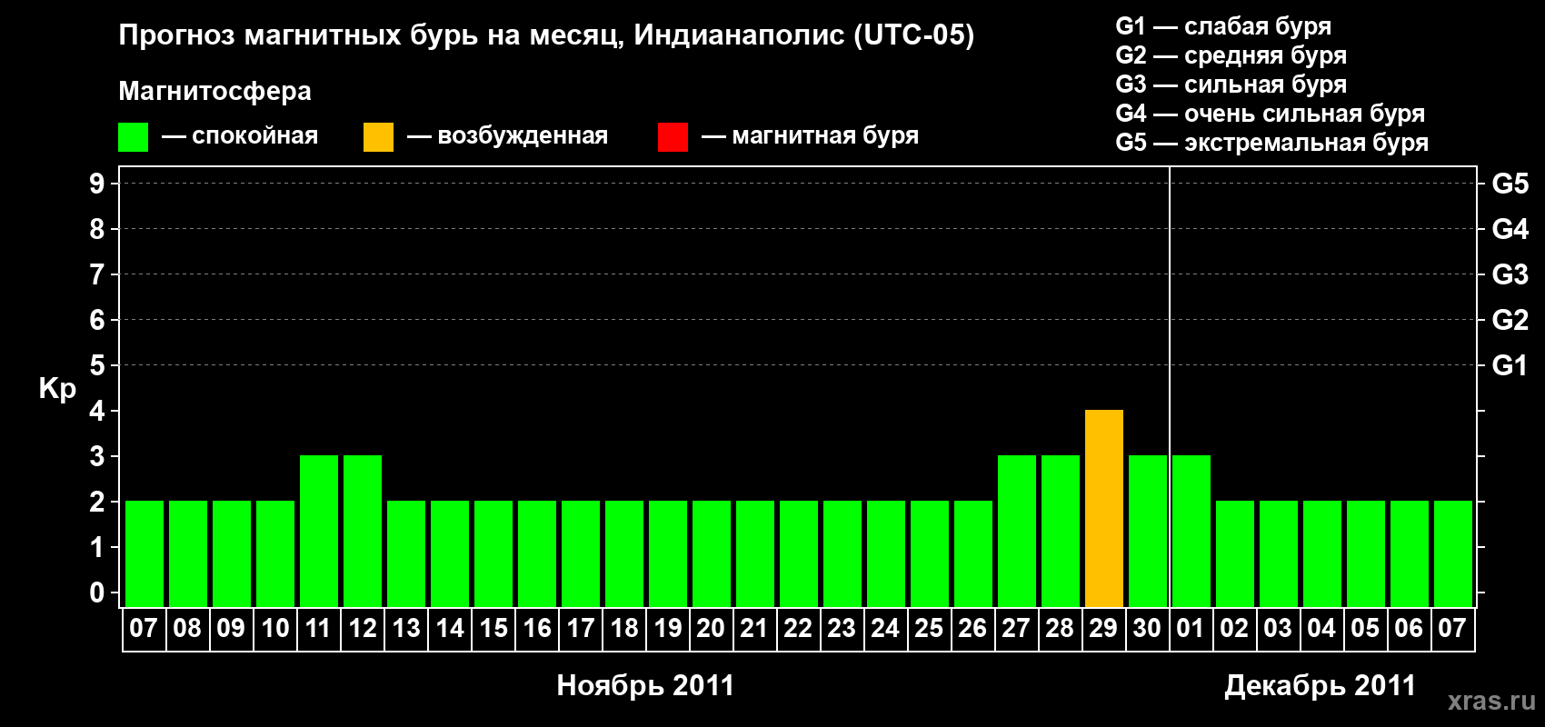 Прогноз магнитных бурь в Индианаполисе — 7 ноября 2011 года