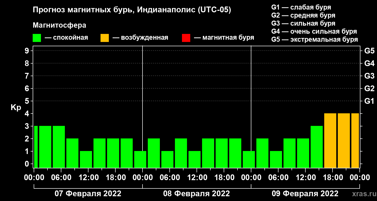 Прогноз магнитных бурь в Индианаполисе — 7 февраля 2022 года