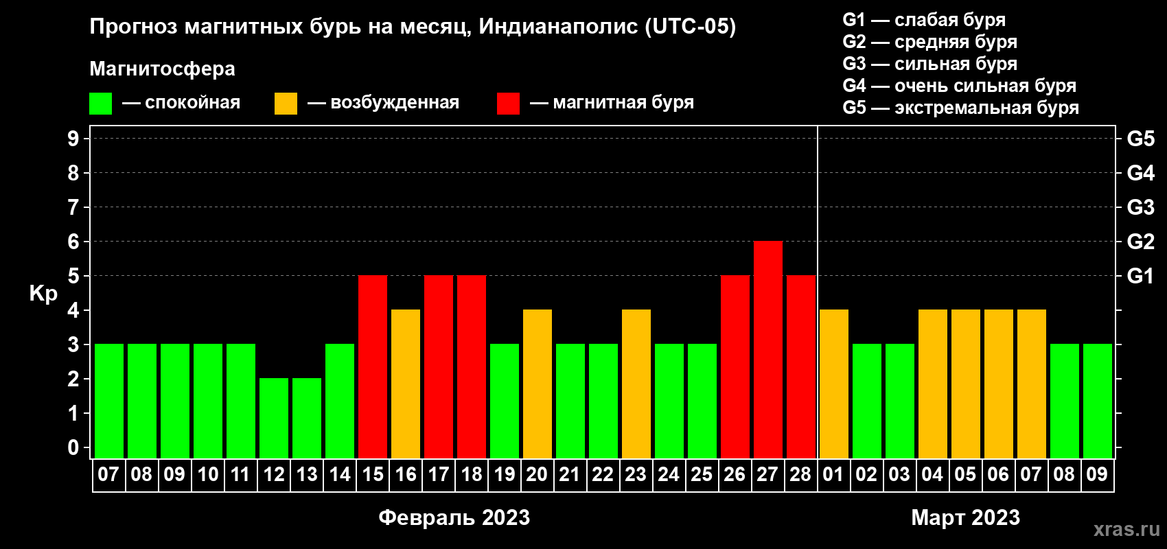 Прогноз магнитных бурь в Индианаполисе — 7 февраля 2023 года