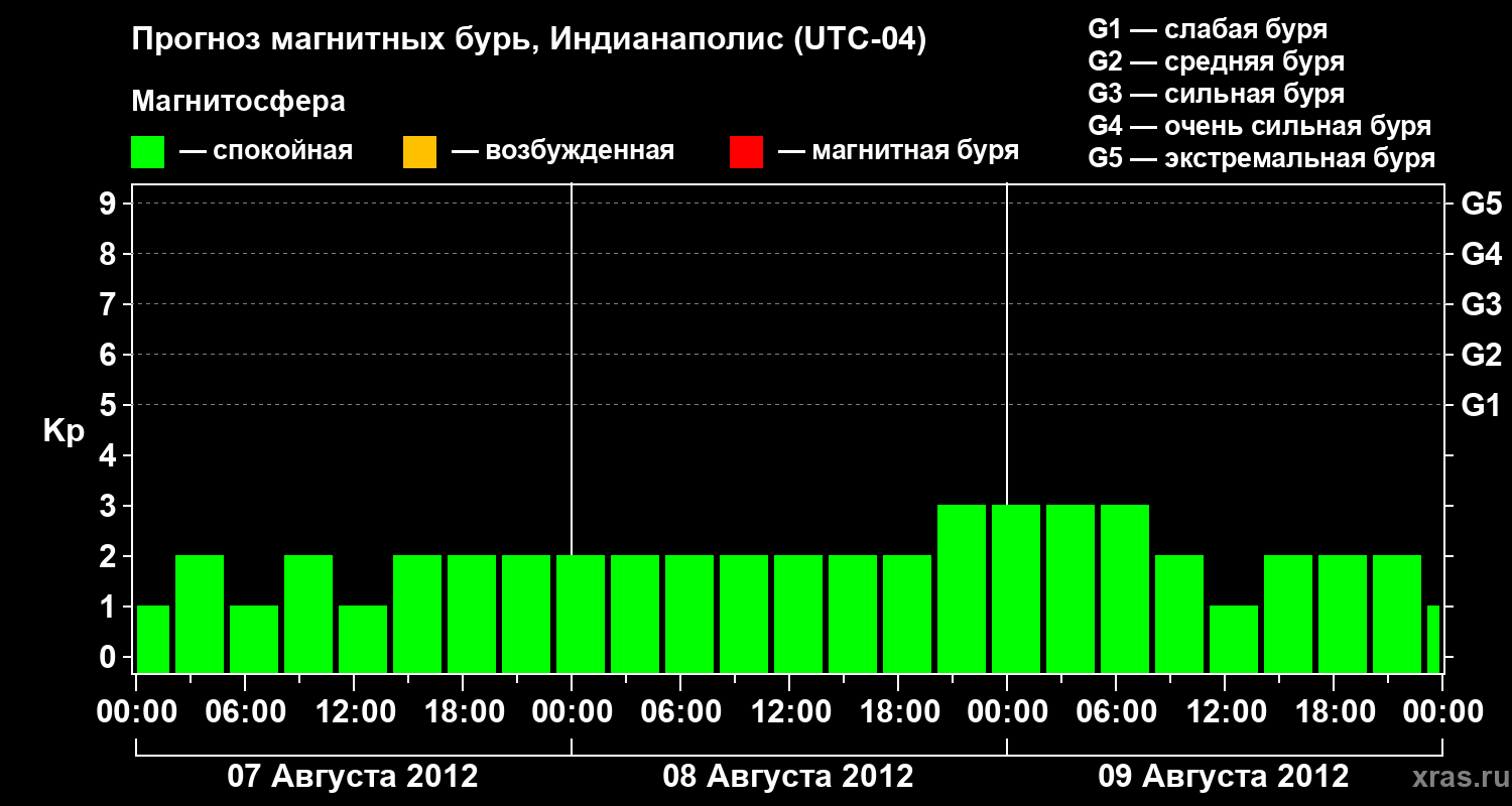 Прогноз магнитных бурь в Индианаполисе на 7 августа 2012 года