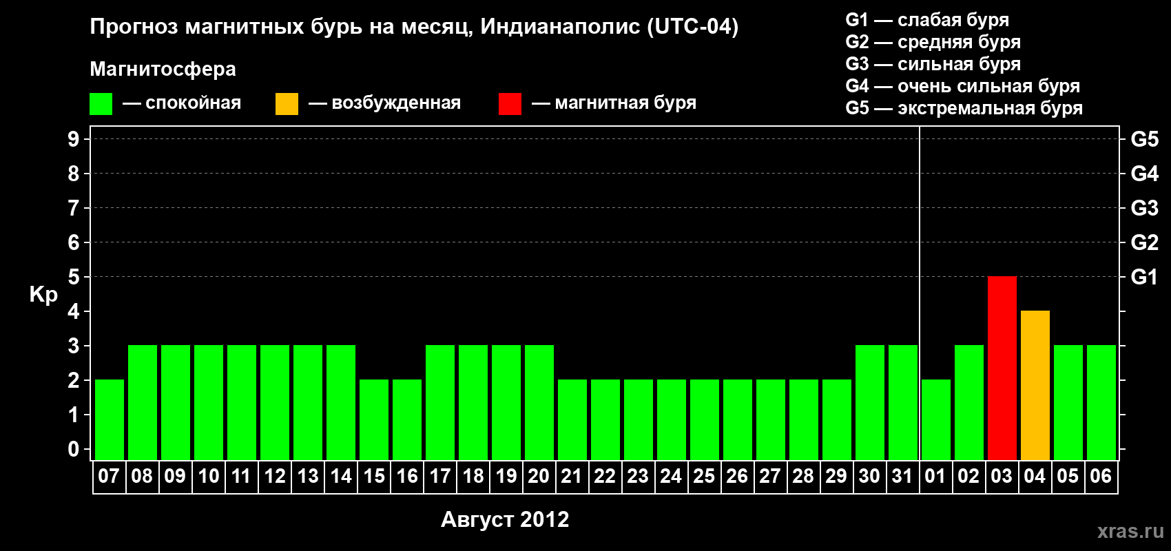 Прогноз магнитных бурь в Индианаполисе — 7 августа 2012 года