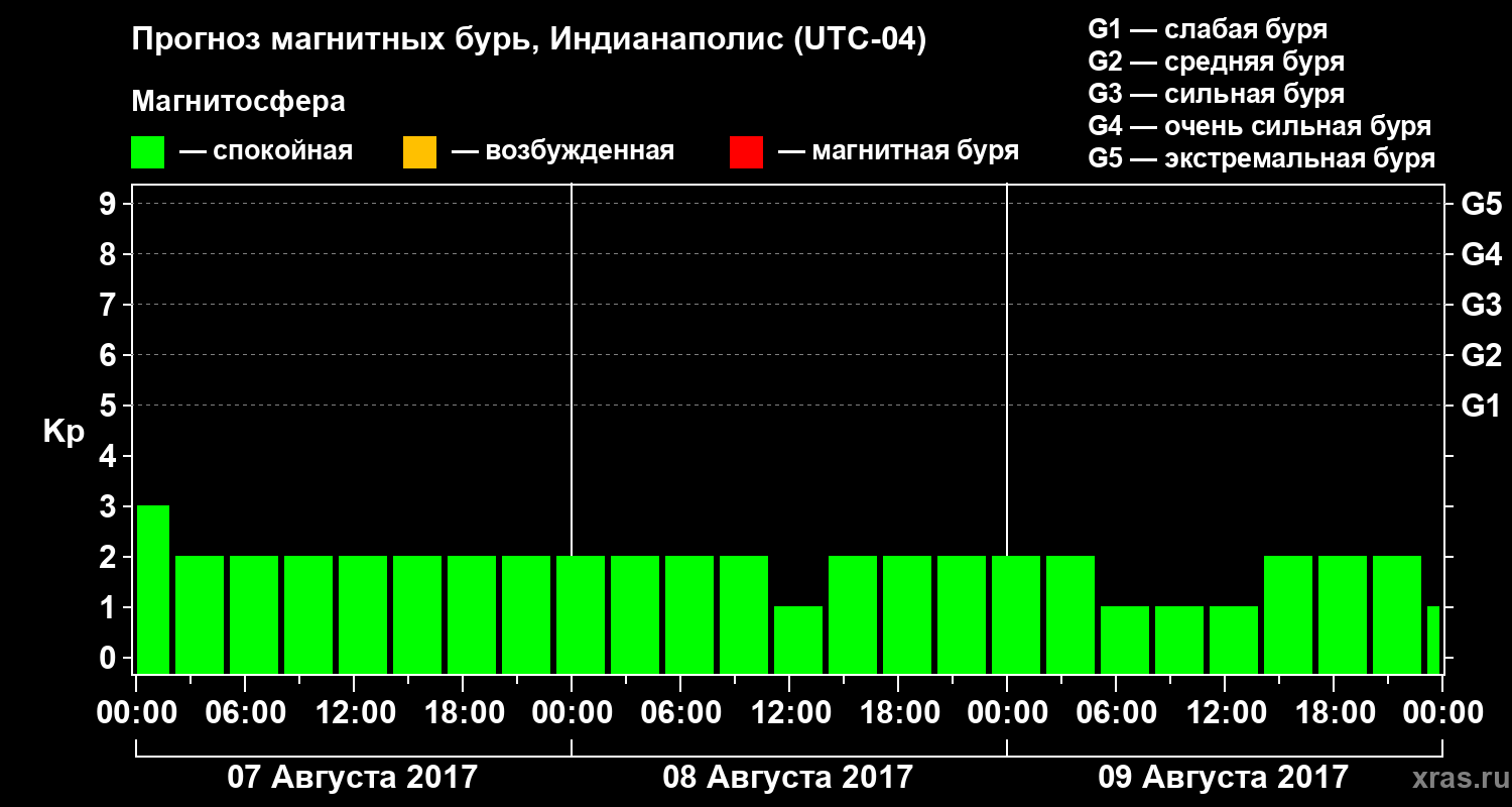 Прогноз магнитных бурь в Индианаполисе на 7 августа 2017 года