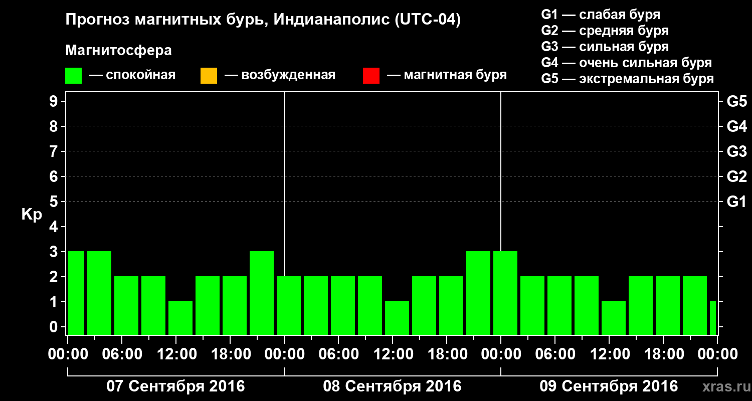 Прогноз магнитных бурь в Индианаполисе на 7 сентября 2016 года