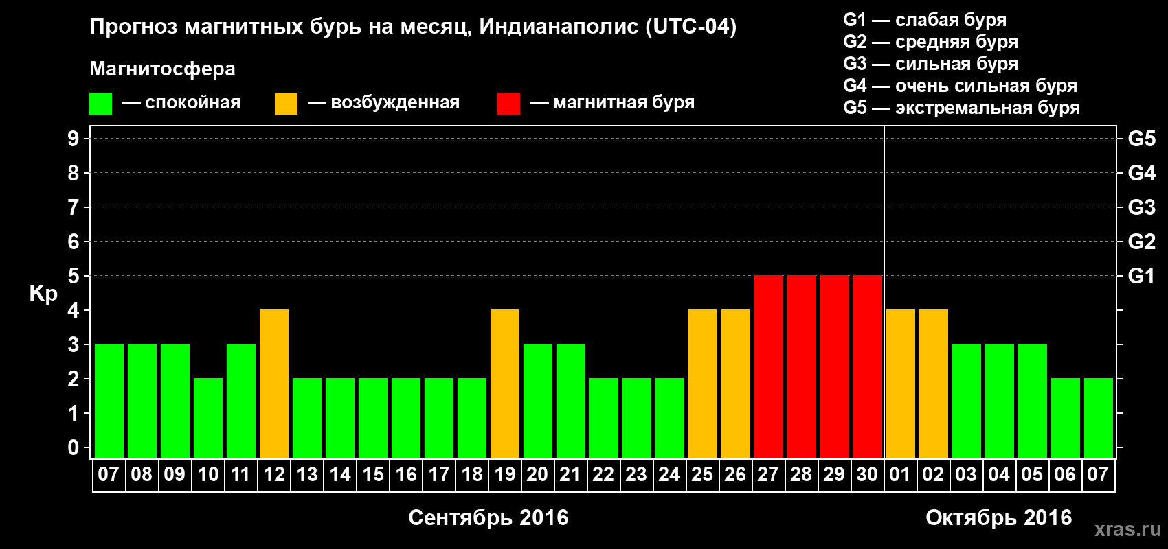 Прогноз магнитных бурь в Индианаполисе — 7 сентября 2016 года