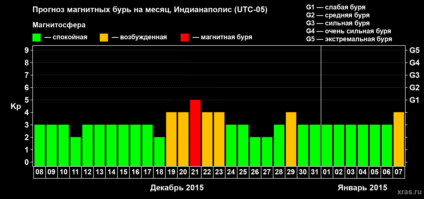 Прогноз магнитных бурь в Индианаполисе на 8 декабря 2014 года