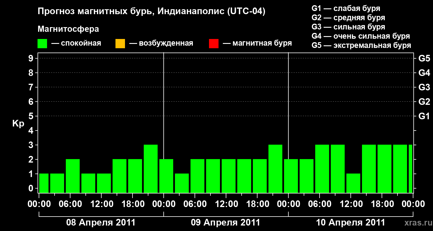 Прогноз магнитных бурь в Индианаполисе на 8 апреля 2011 года