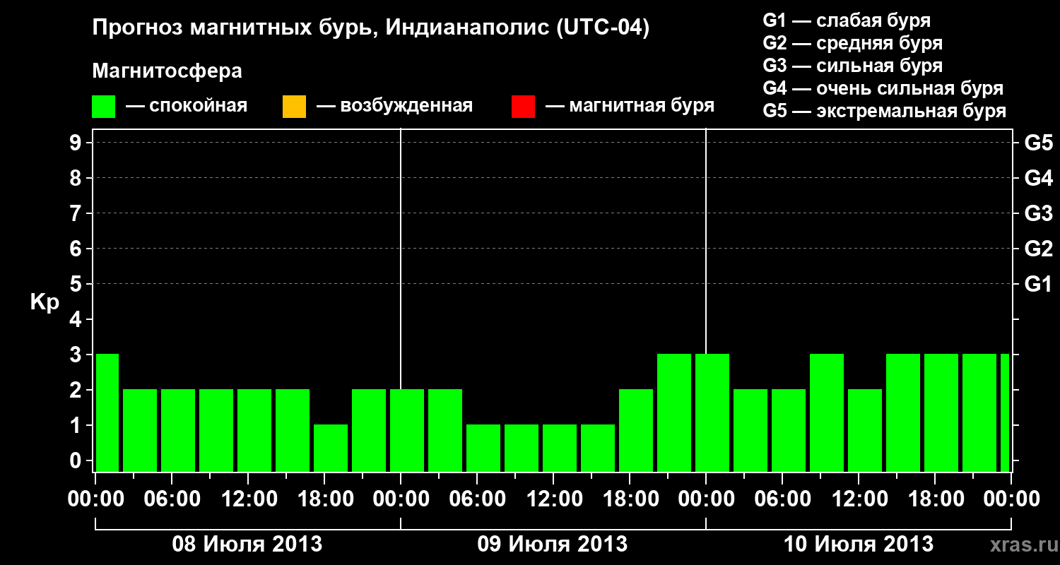 Прогноз магнитных бурь в Индианаполисе — 8 июля 2013 года
