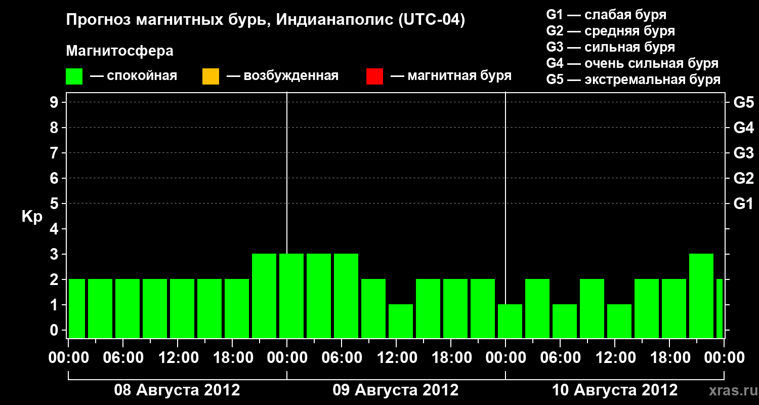Прогноз магнитных бурь в Индианаполисе на 8 августа 2012 года