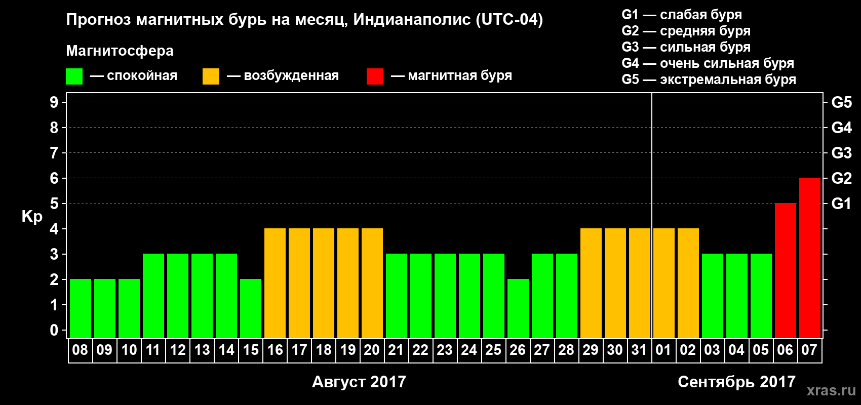 Прогноз магнитных бурь в Индианаполисе — 8 августа 2017 года