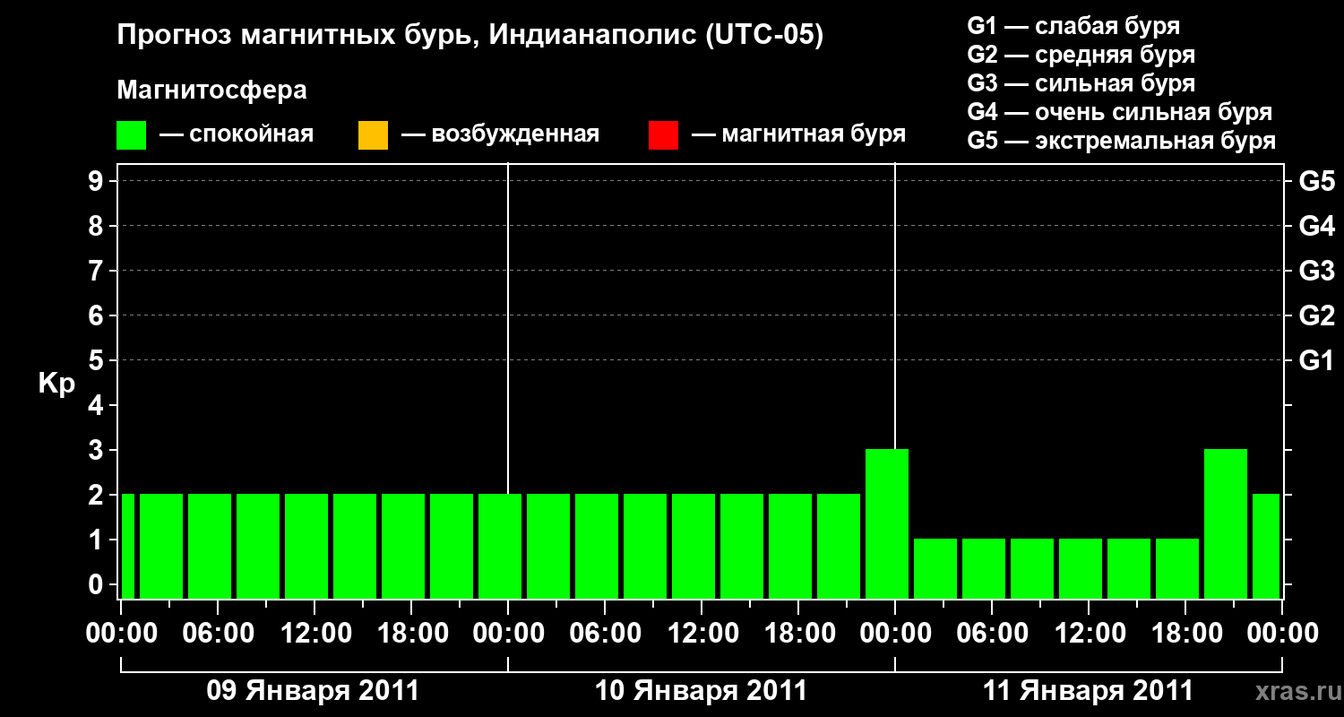 Прогноз магнитных бурь в Индианаполисе — 9 января 2011 года