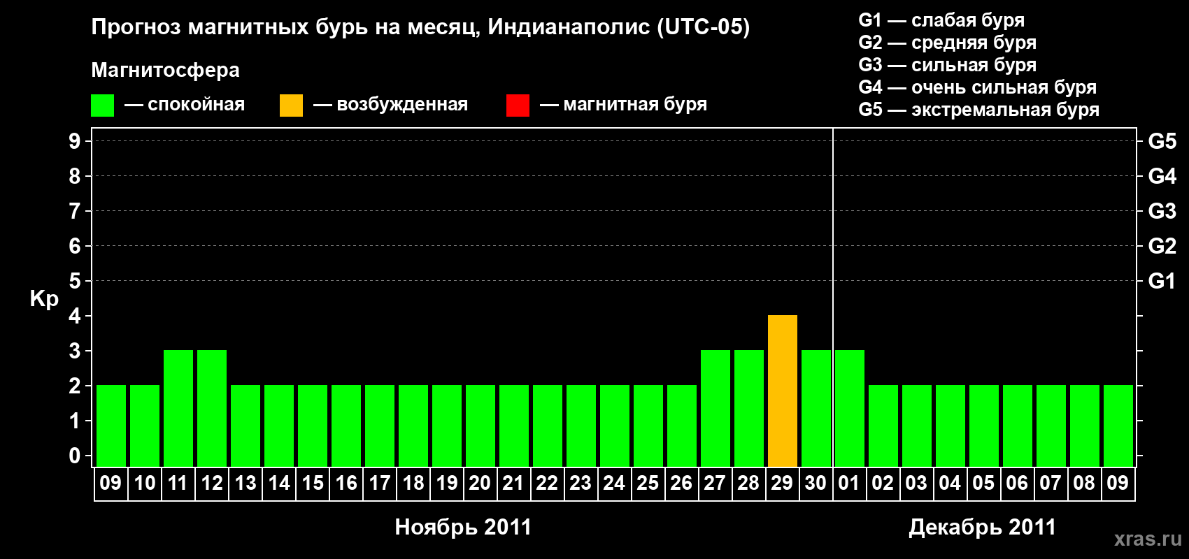 Прогноз магнитных бурь в Индианаполисе — 9 ноября 2011 года