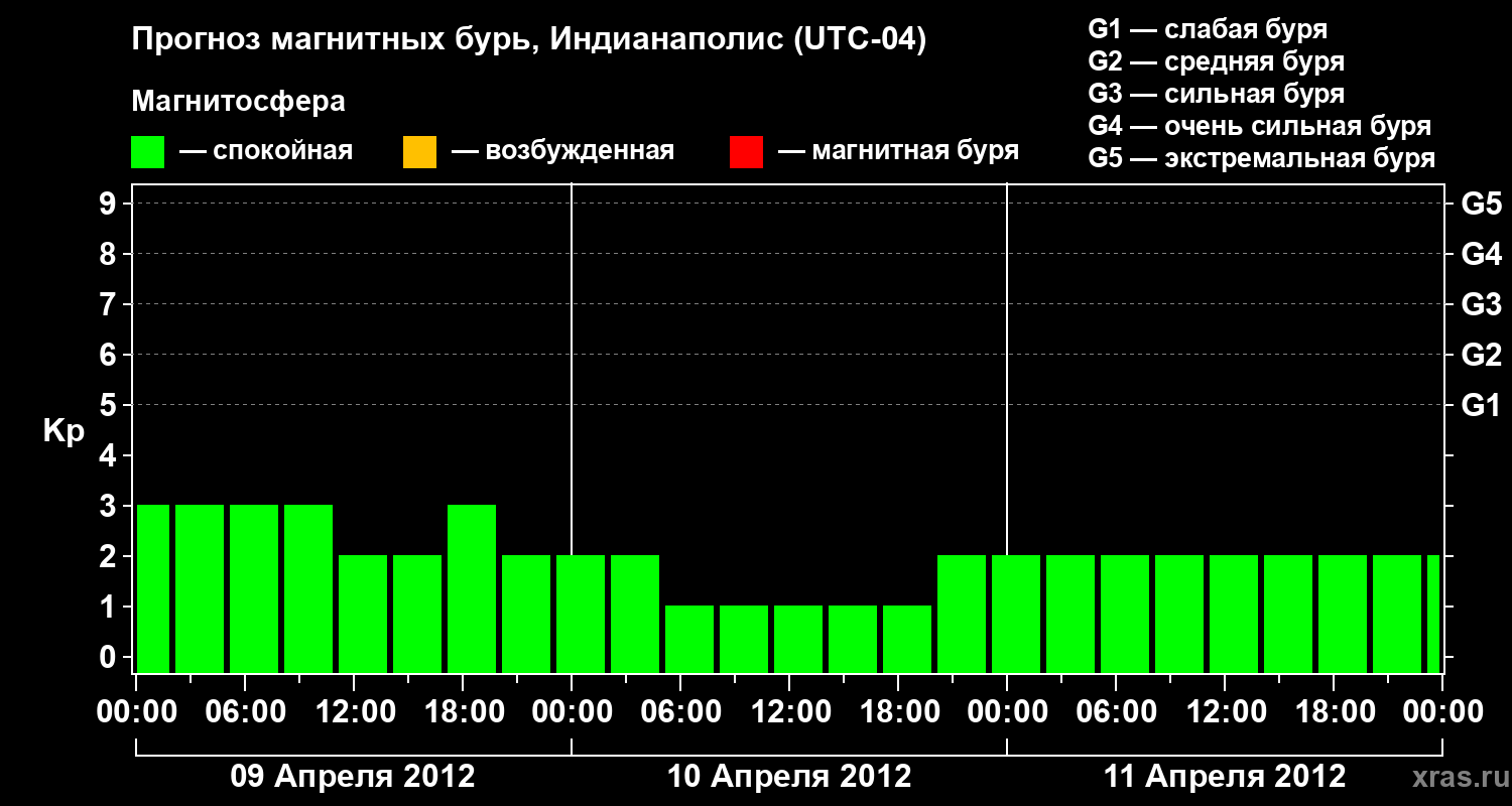 Прогноз магнитных бурь в Индианаполисе на 9 апреля 2012 года