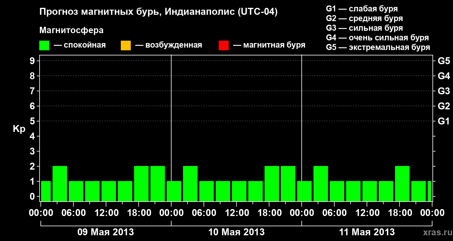 Прогноз магнитных бурь в Индианаполисе на 9 мая 2013 года