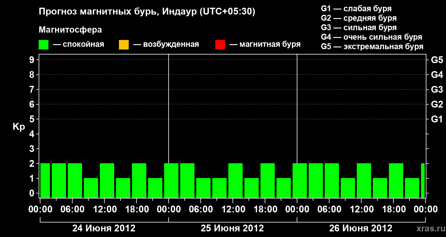 Прогноз магнитных бурь в Индауре на 24 июня 2012 года