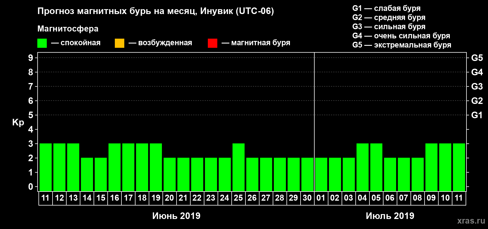 Прогноз магнитных бурь в Инувике — 11 июня 2019 года