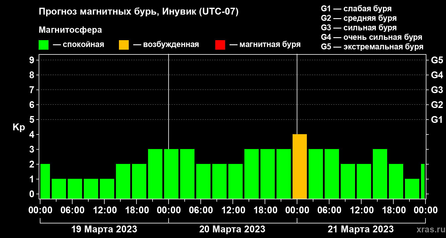 Прогноз магнитных бурь в Инувике на 19 марта 2023 года