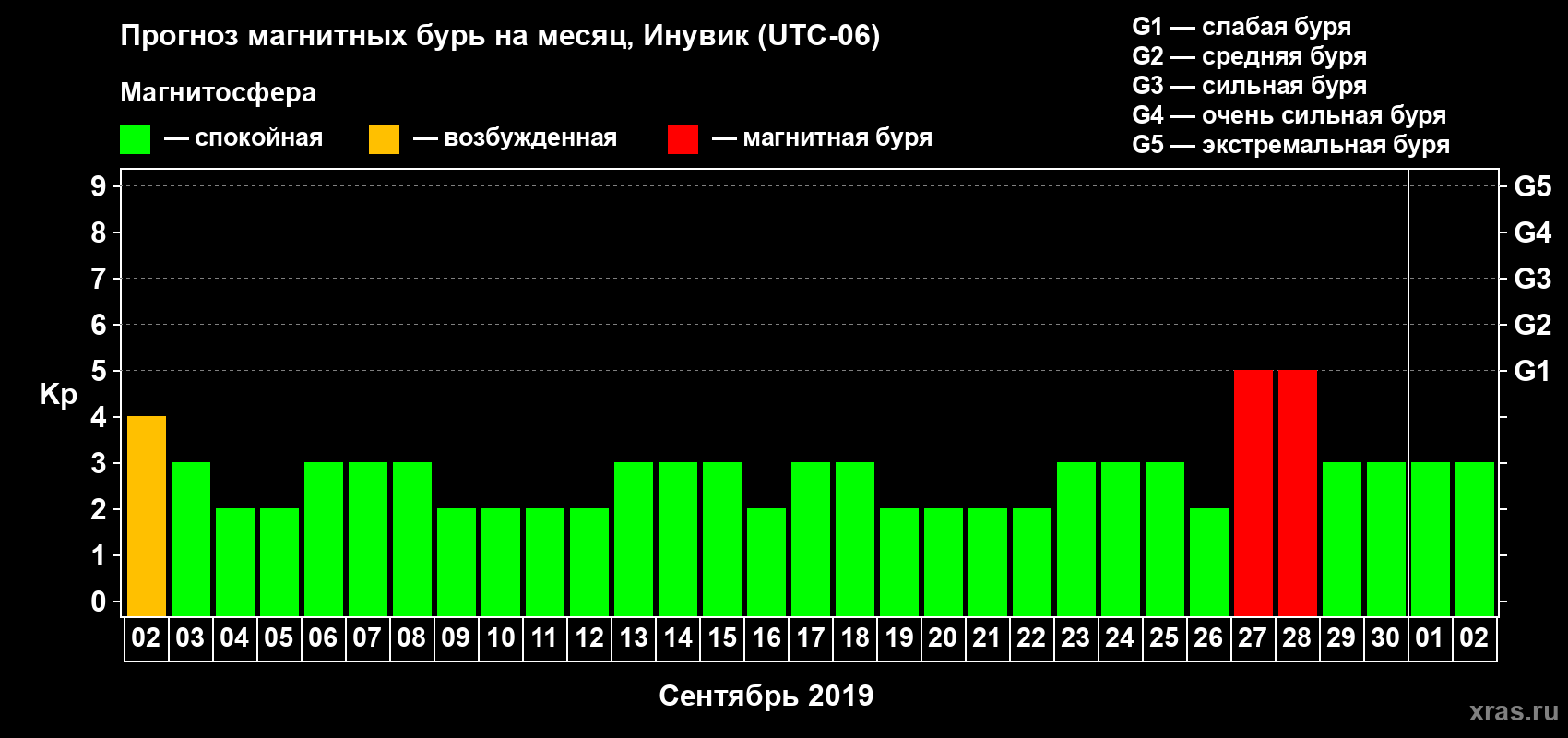 Прогноз магнитных бурь в Инувике — 2 сентября 2019 года