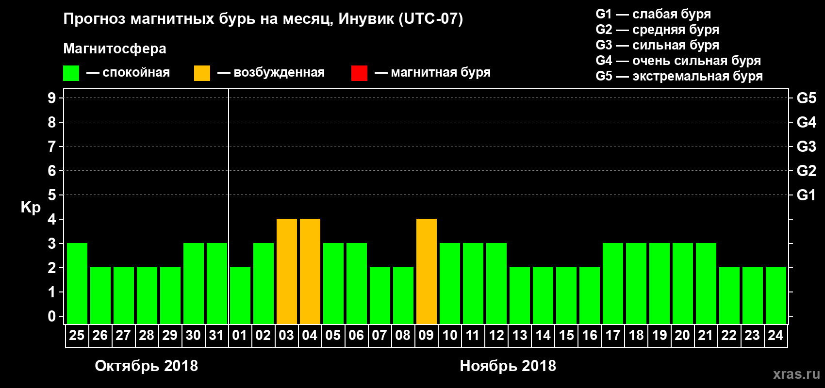 Прогноз магнитных бурь в Инувике — 25 октября 2018 года