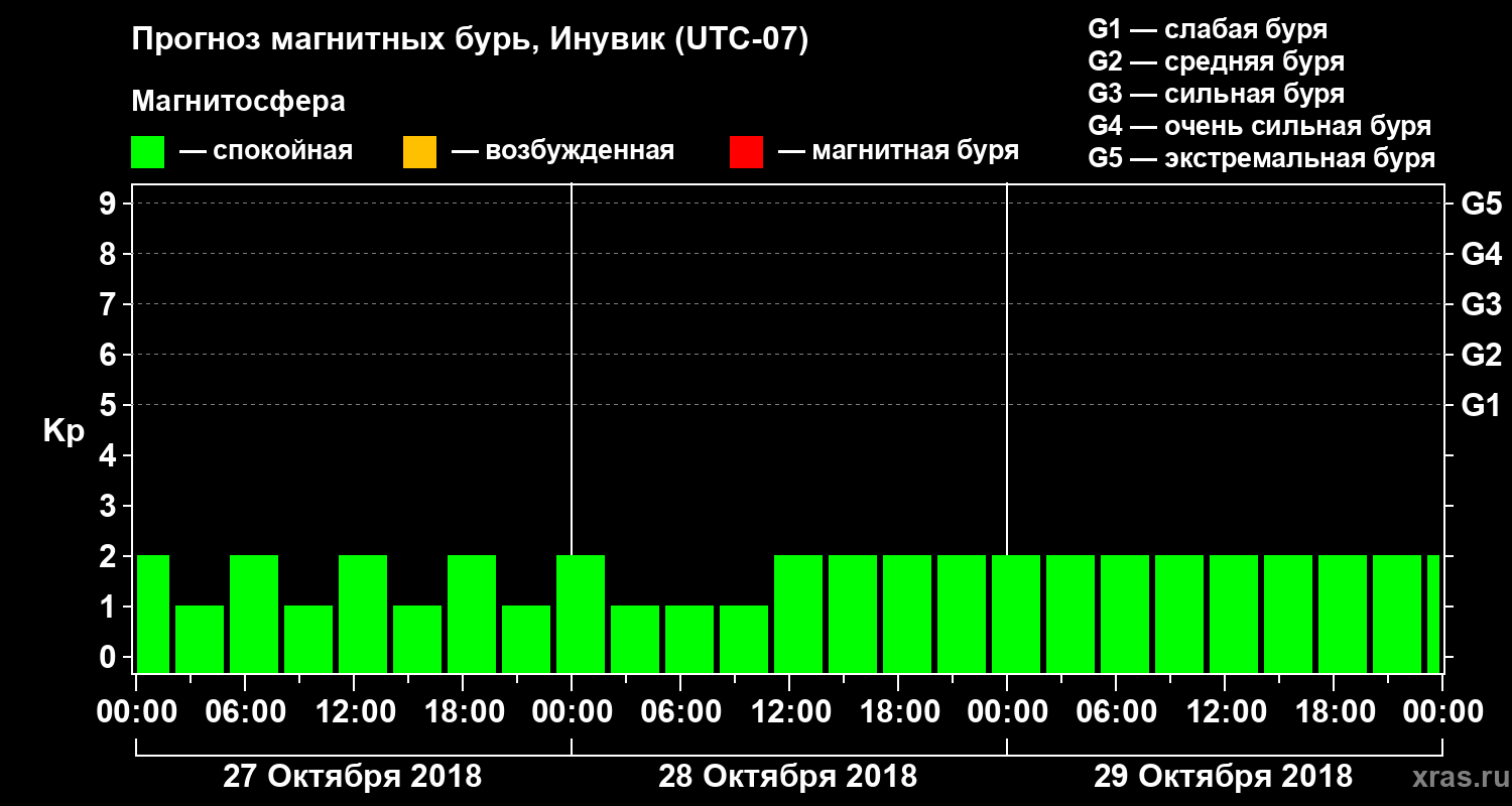 Прогноз магнитных бурь в Инувике — 27 октября 2018 года