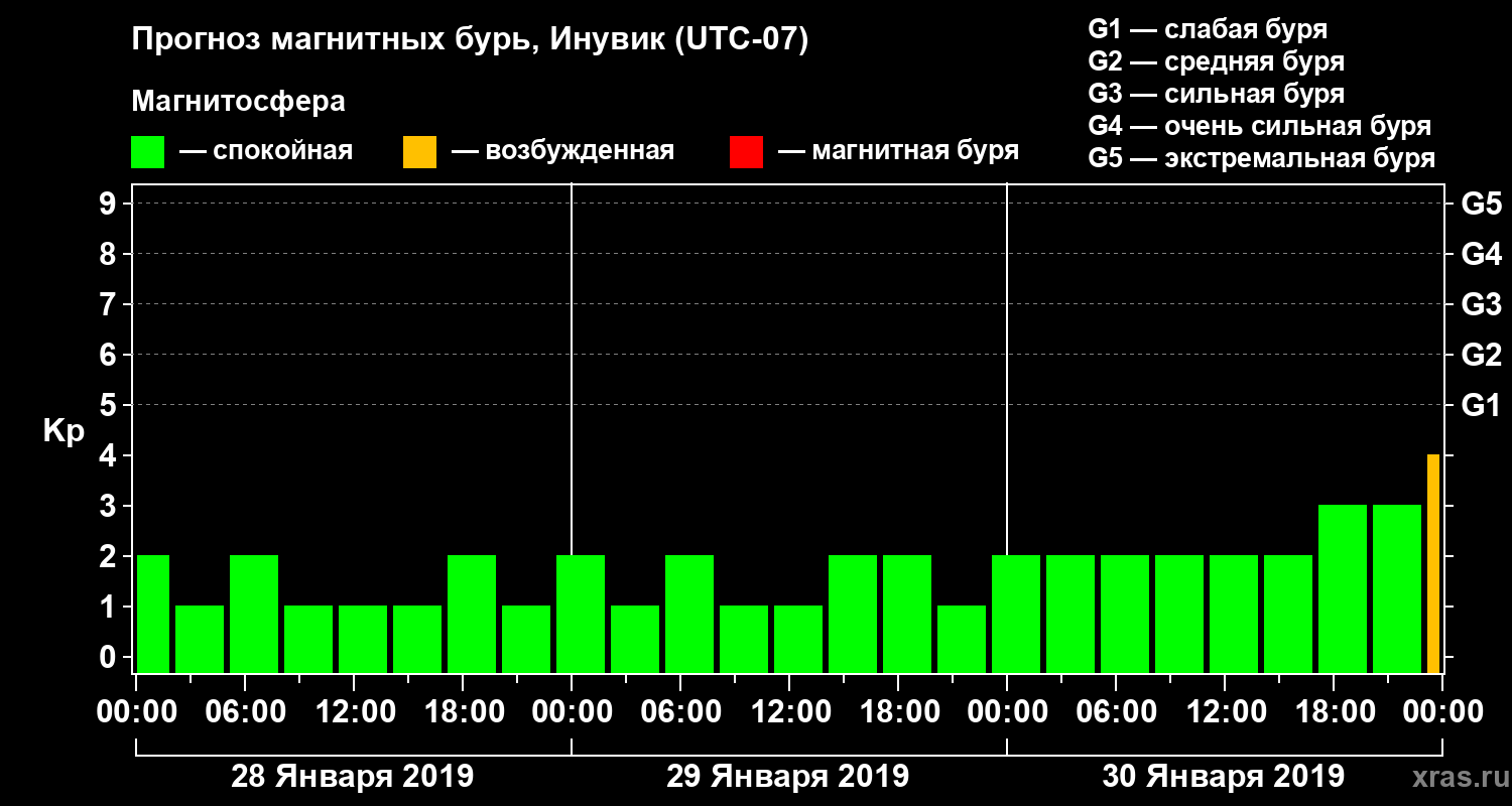 Прогноз магнитных бурь в Инувике — 28 января 2019 года