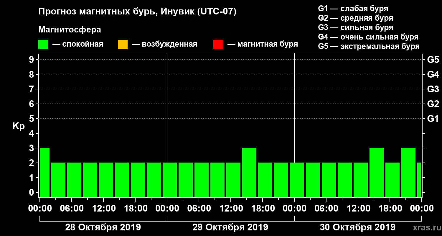 Прогноз магнитных бурь в Инувике — 28 октября 2019 года