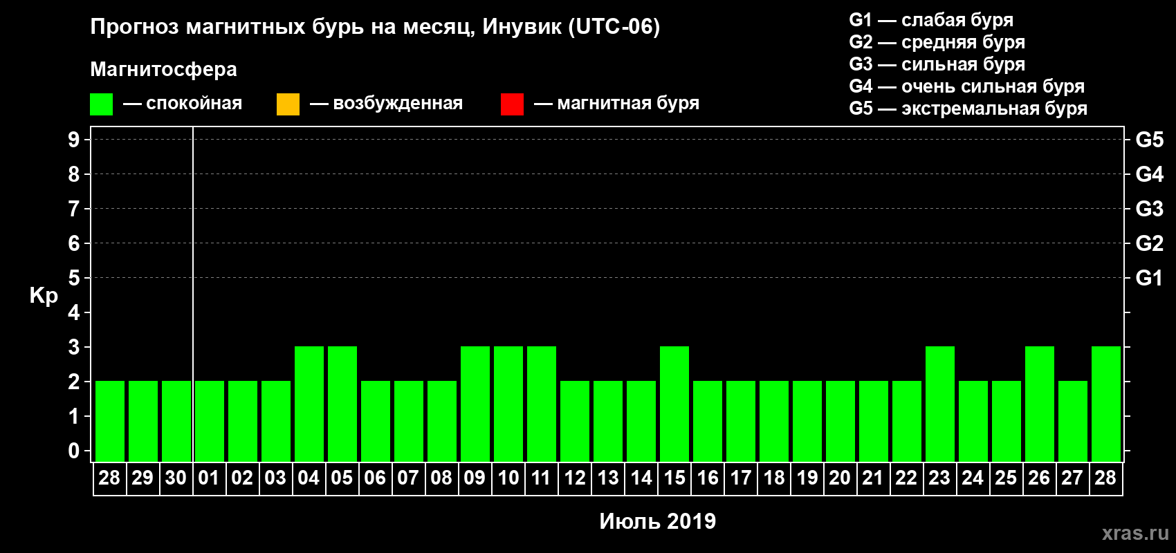 Прогноз магнитных бурь в Инувике — 28 июня 2019 года