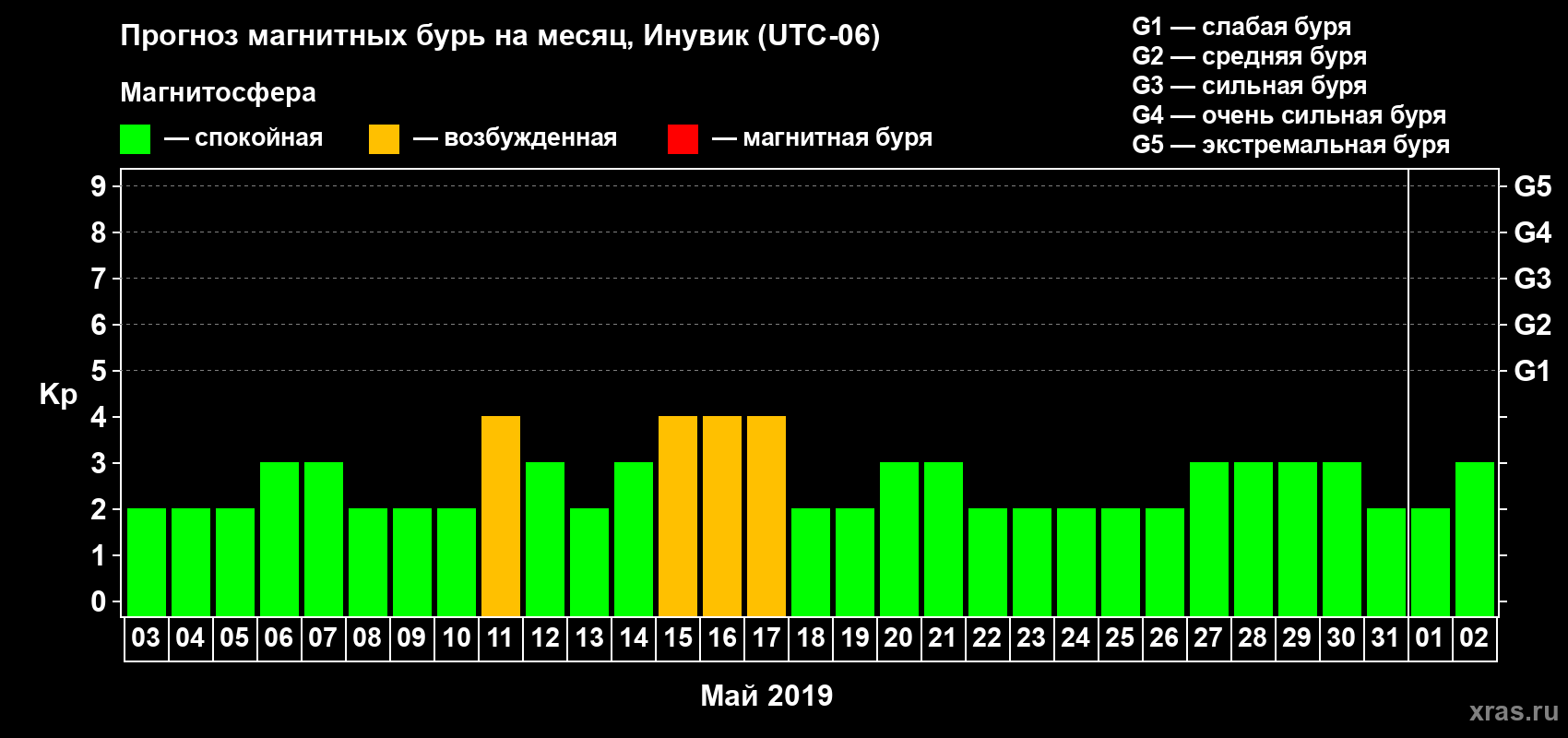 Прогноз магнитных бурь в Инувике — 3 мая 2019 года
