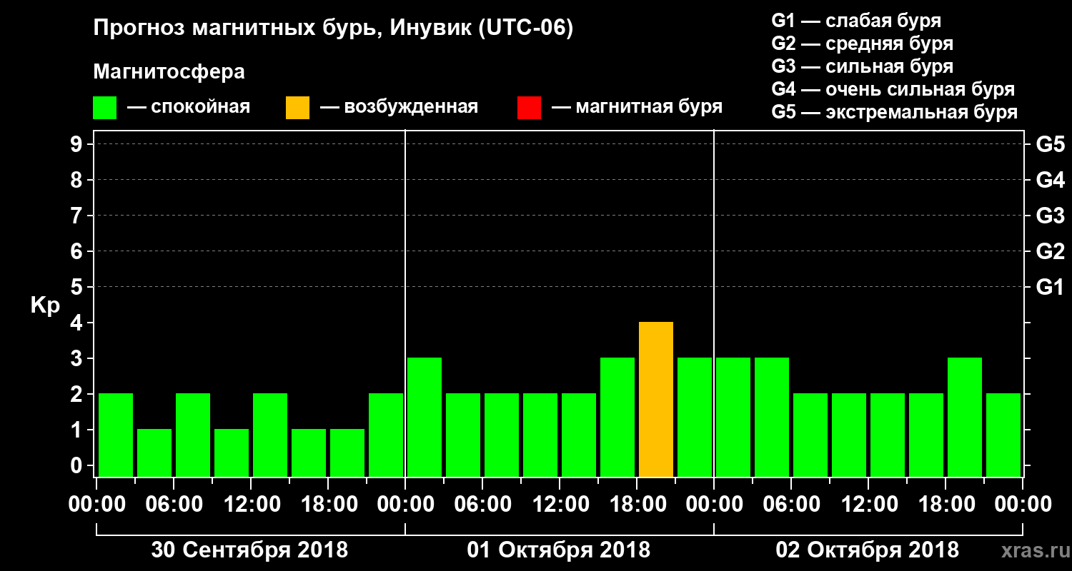 Прогноз магнитных бурь в Инувике — 30 сентября 2018 года