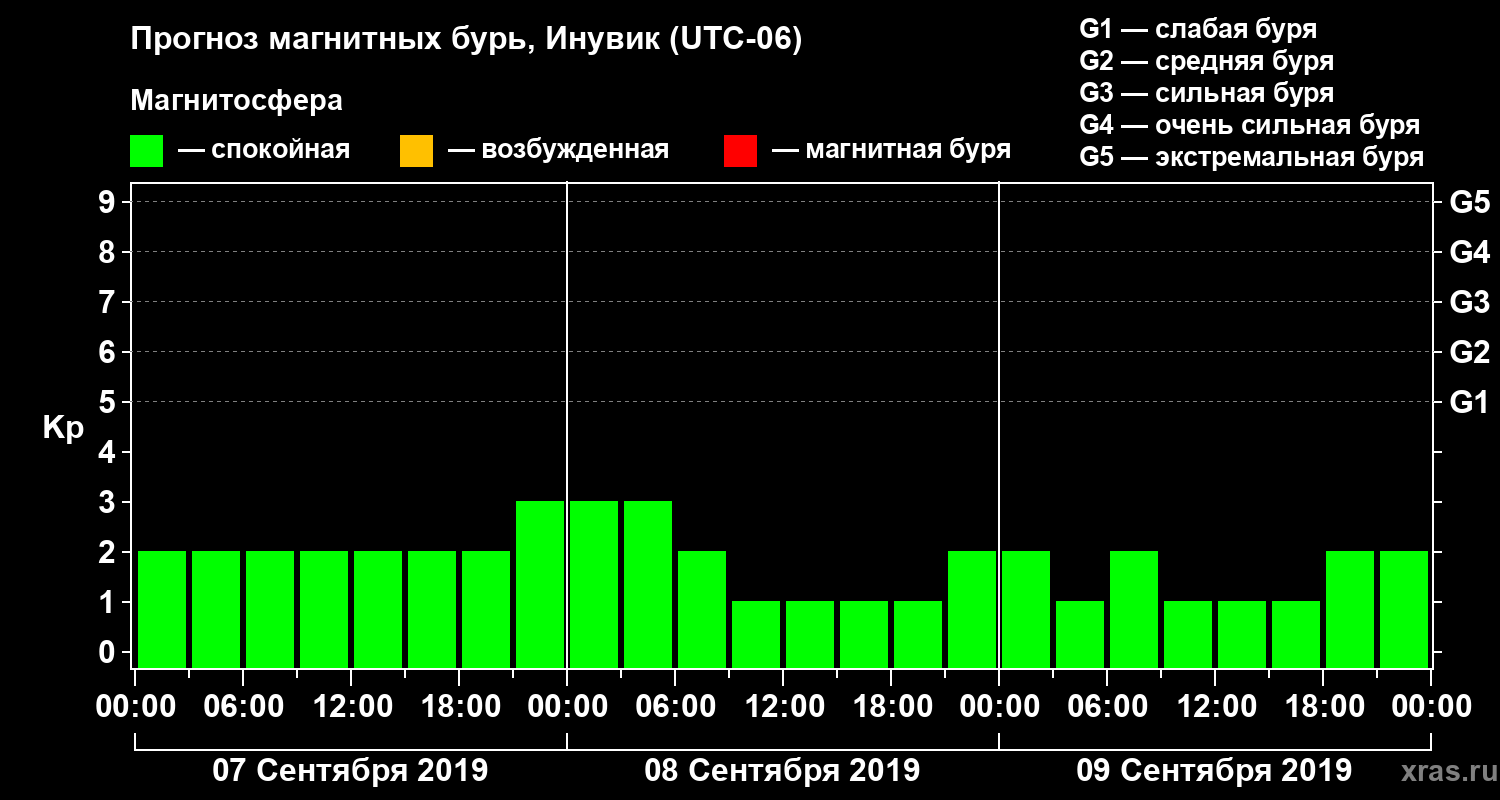 Прогноз магнитных бурь в Инувике — 7 сентября 2019 года
