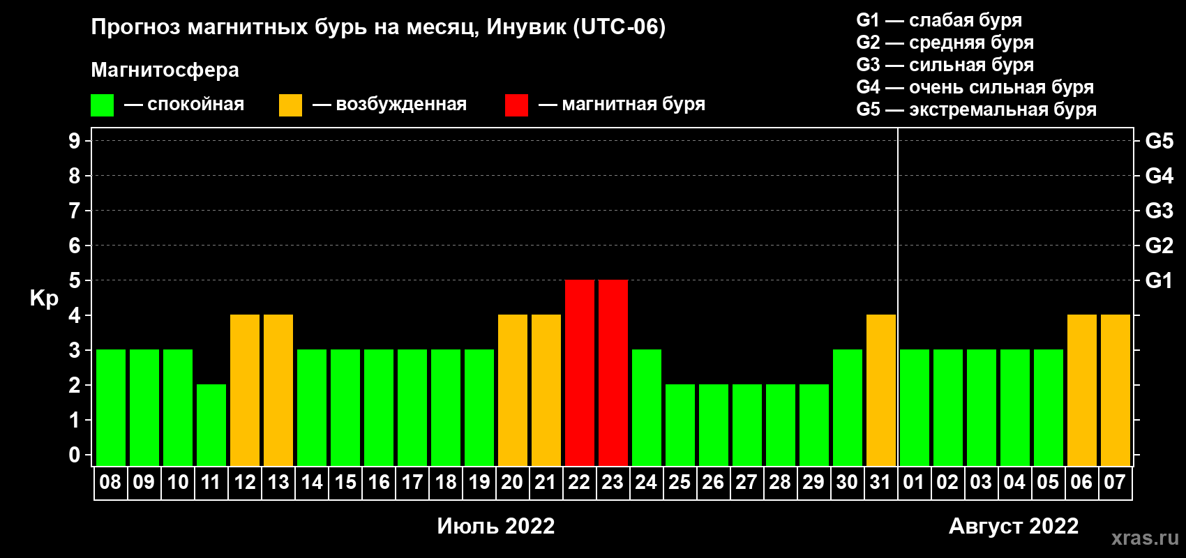 Прогноз магнитных бурь в Инувике на 8 июля 2022 года