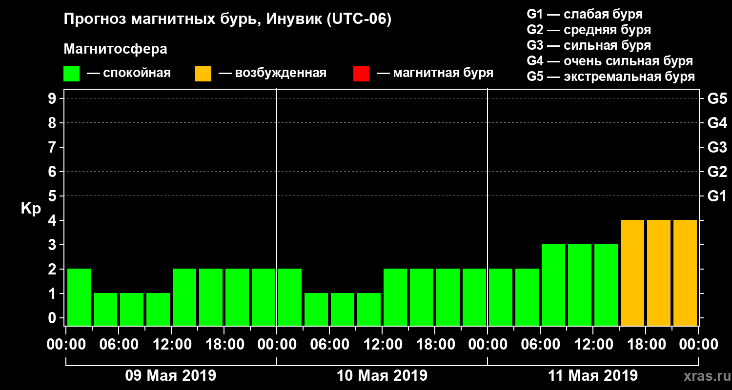 Прогноз магнитных бурь в Инувике — 9 мая 2019 года