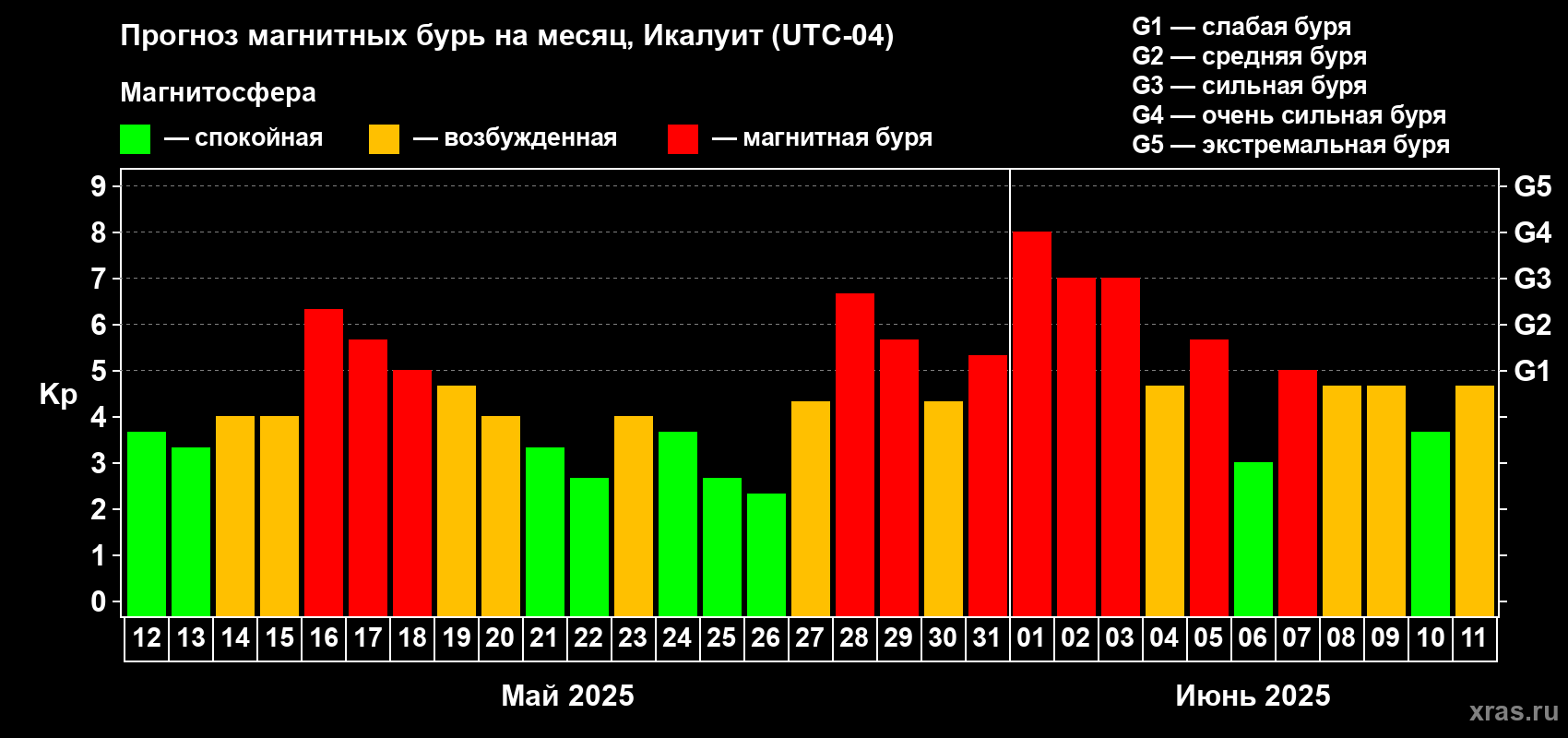 Прогноз магнитных бурь в Икалуите — 12 мая 2025 года