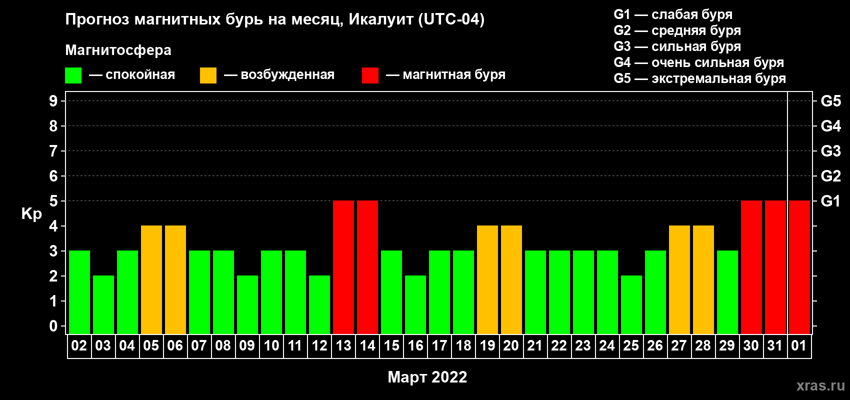 Прогноз магнитных бурь в Икалуите — 2 марта 2022 года