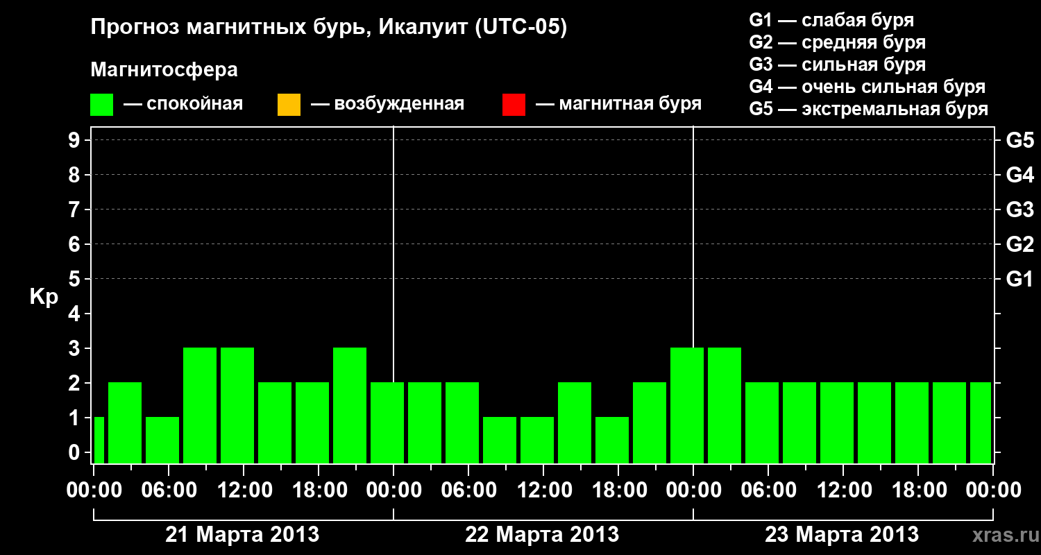 Прогноз магнитных бурь в Икалуите — 21 марта 2013 года