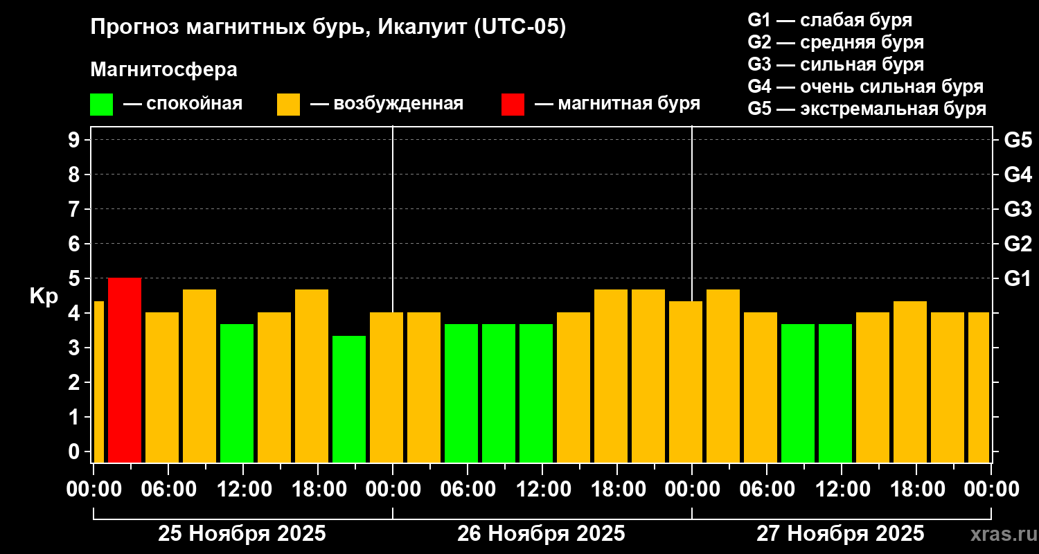 Прогноз магнитных бурь в Икалуите — 25 ноября 2025 года