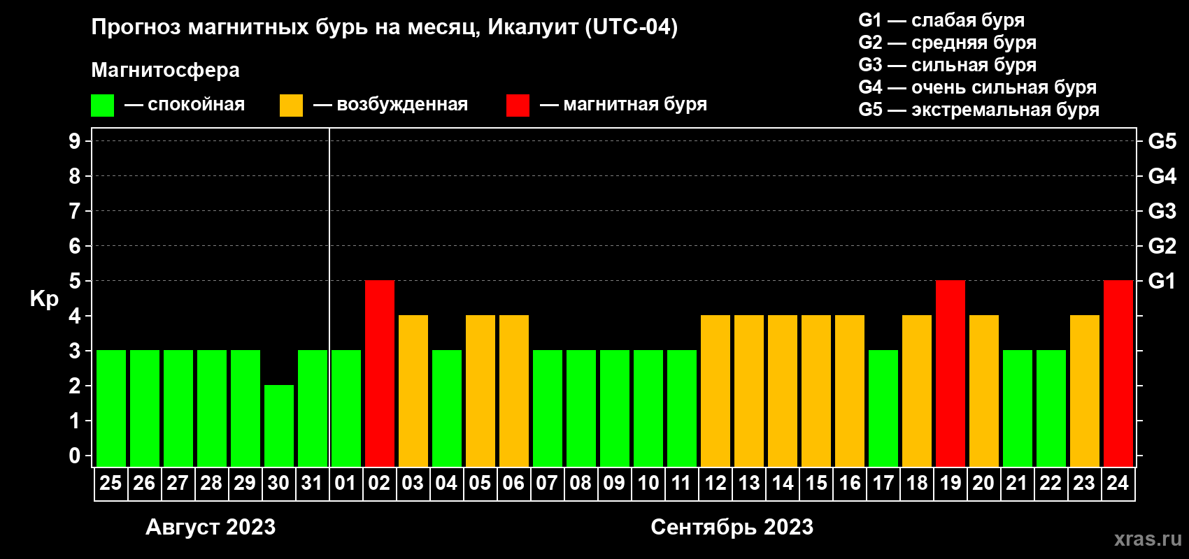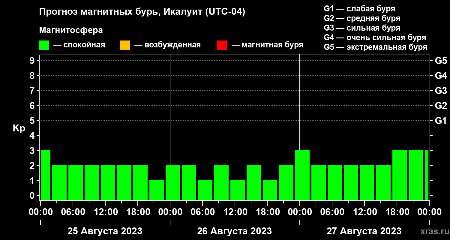Прогноз магнитных бурь в Икалуите на 25 августа 2023 года