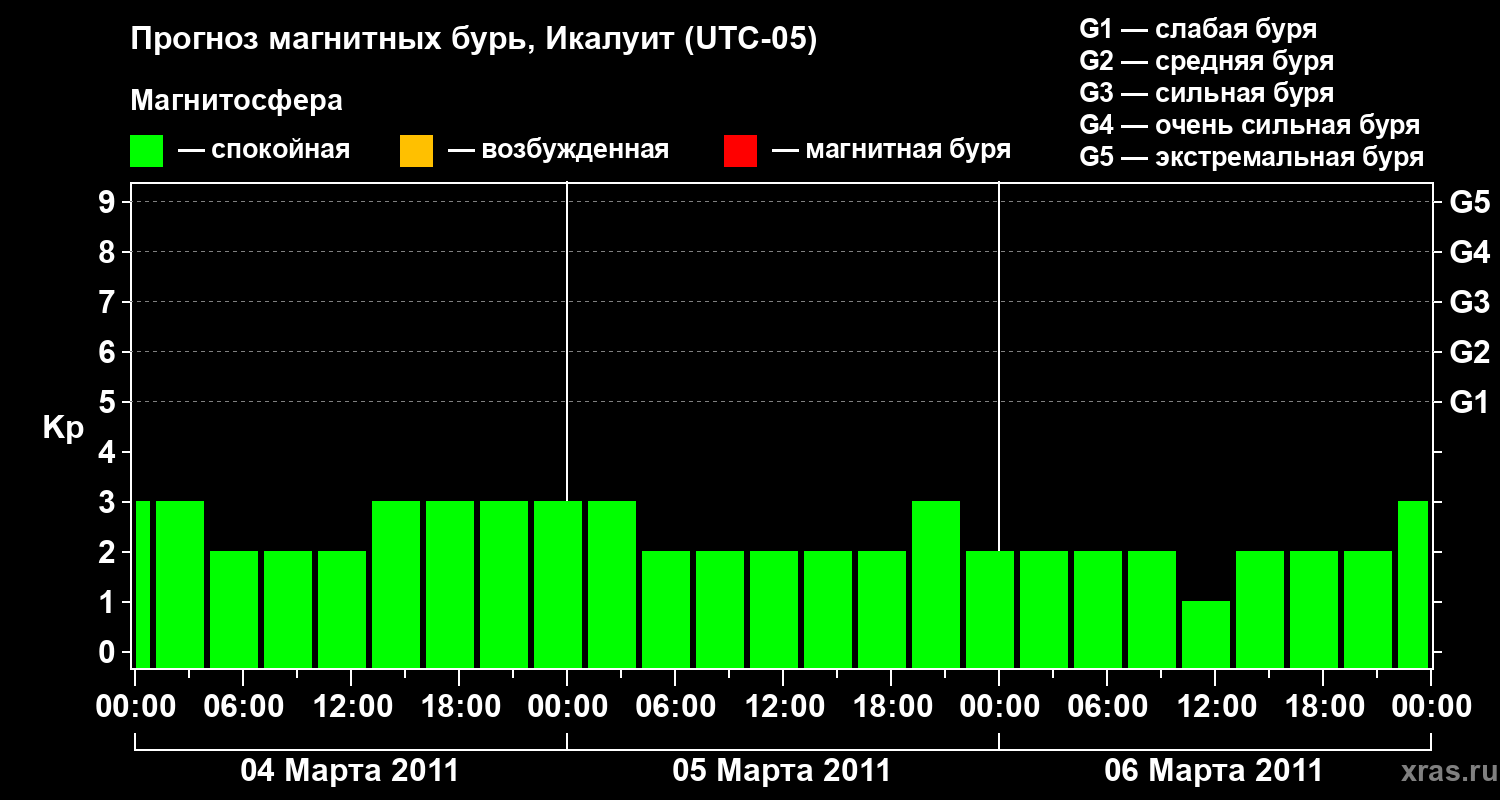 Прогноз магнитных бурь в Икалуите на 4 марта 2011 года