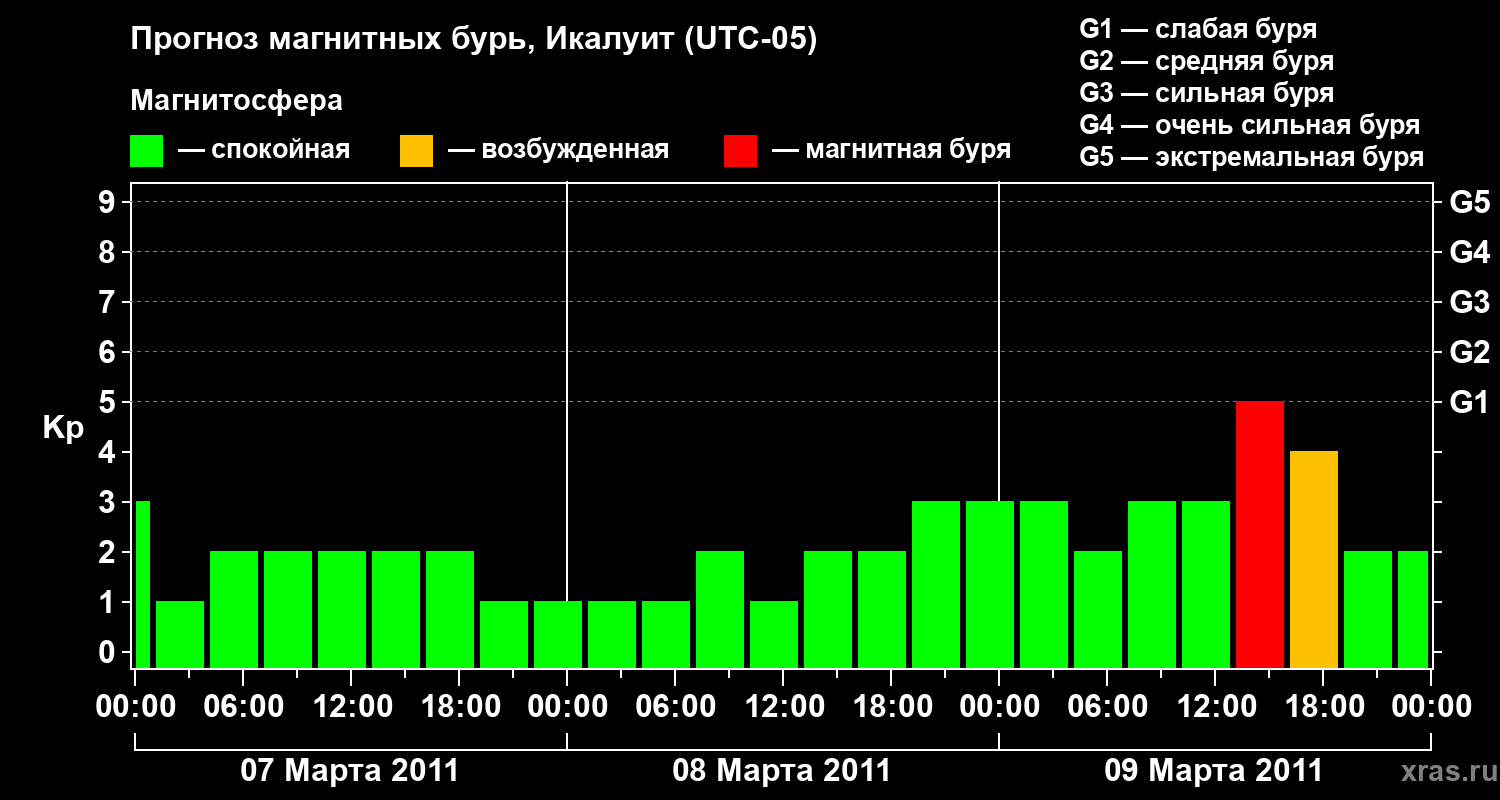Прогноз магнитных бурь в Икалуите — 7 марта 2011 года