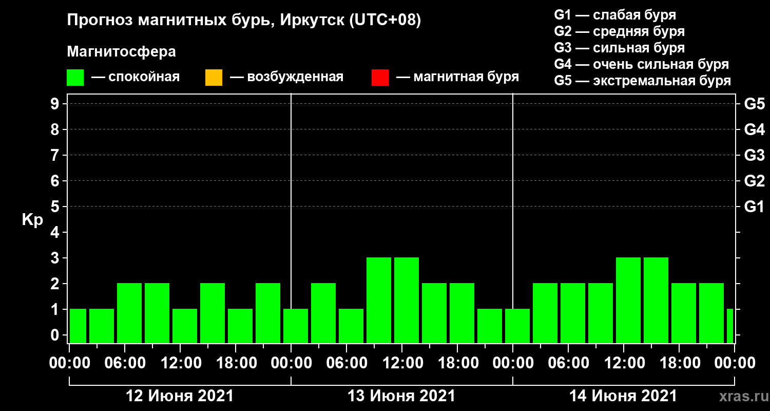 Прогноз магнитных бурь в Иркутске — 12 июня 2021 года
