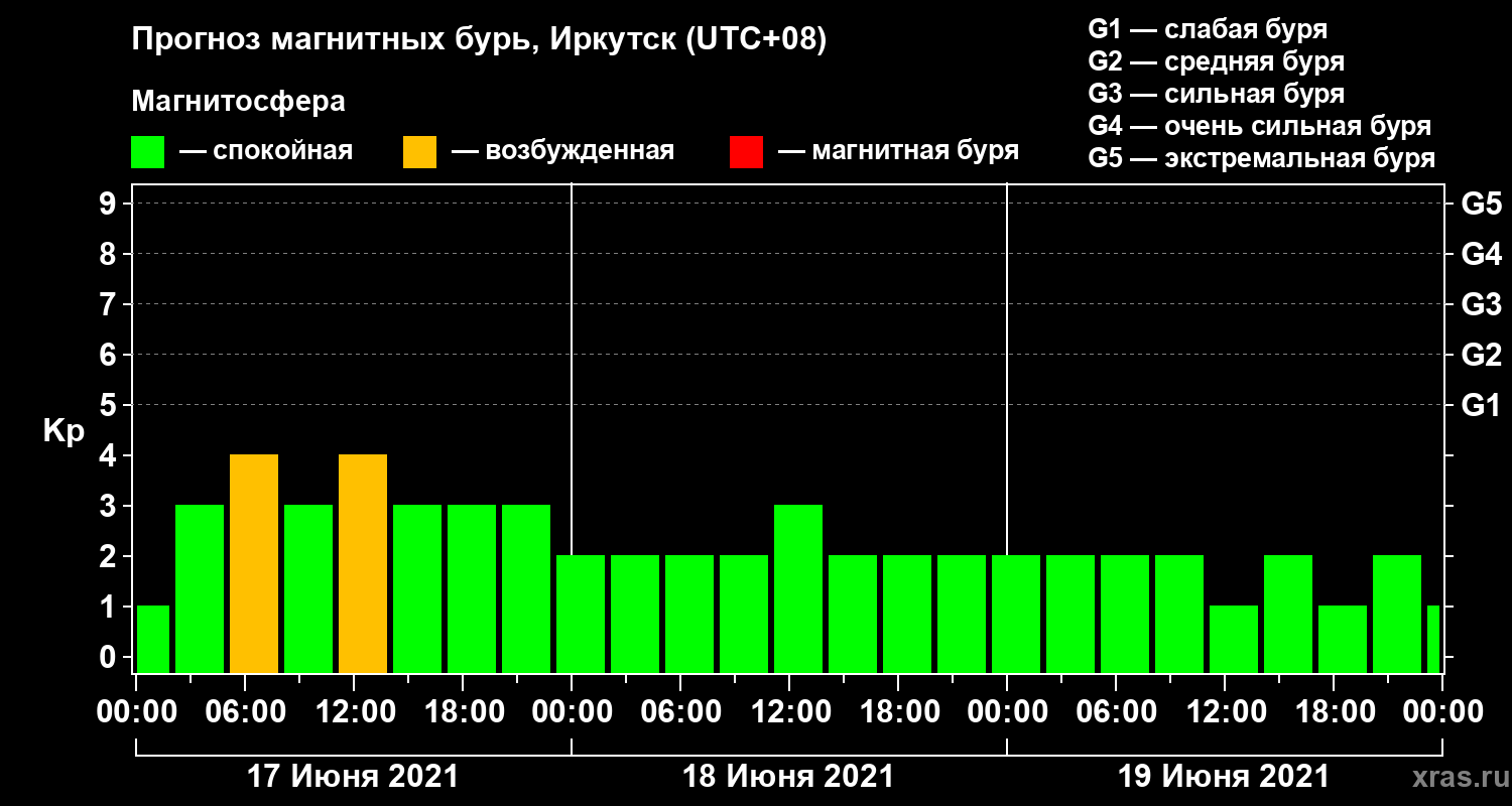 Прогноз магнитных бурь в Иркутске — 17 июня 2021 года
