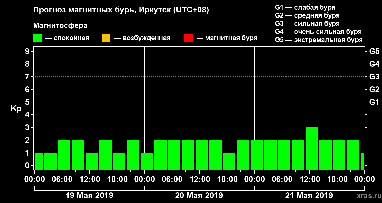 Прогноз магнитных бурь в Иркутске на 19 мая 2019 года