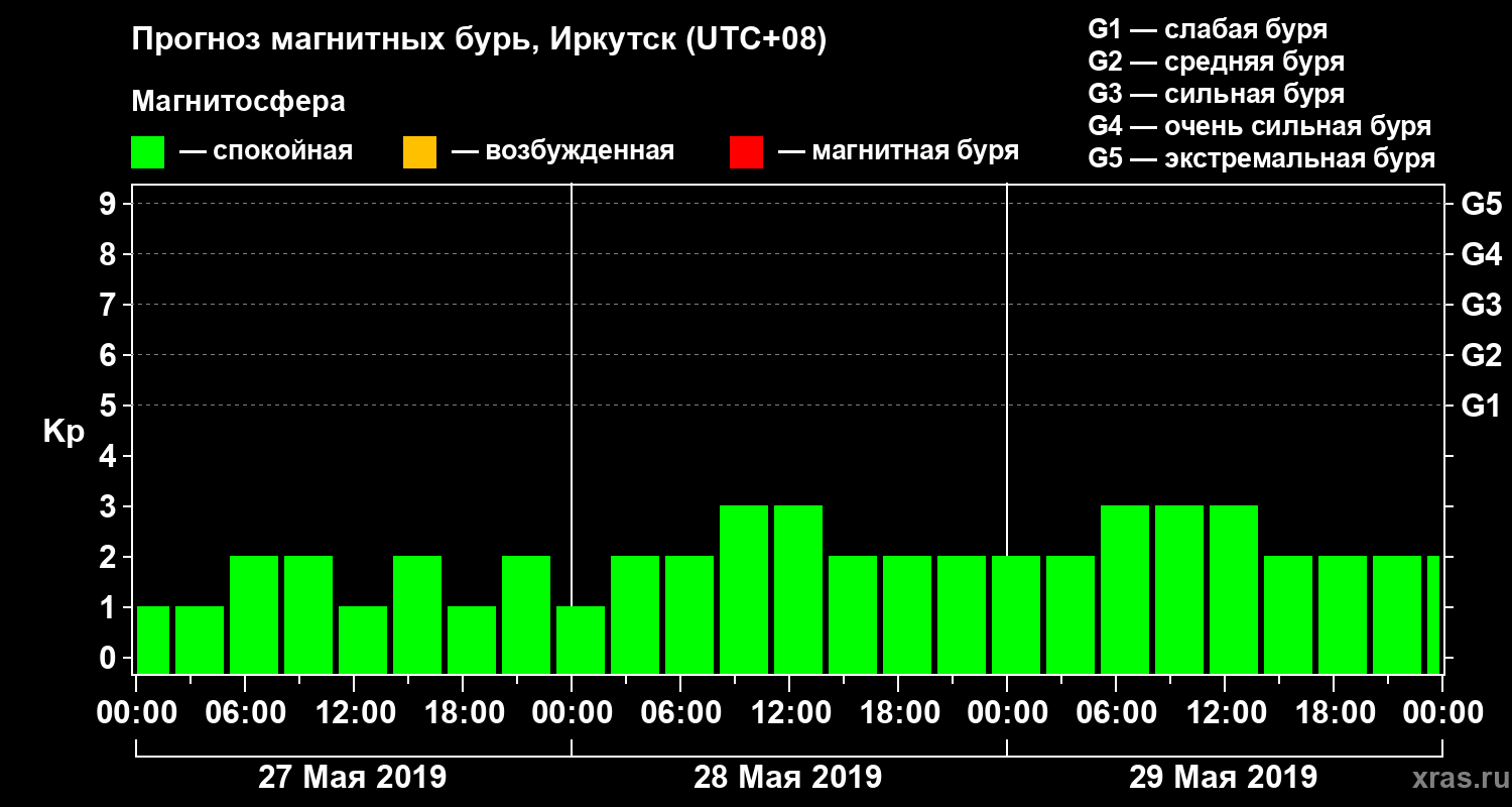 Прогноз магнитных бурь в Иркутске — 27 мая 2019 года