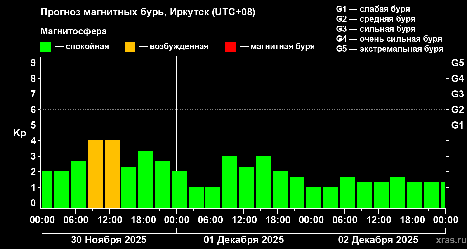 Прогноз магнитных бурь в Иркутске — 30 ноября 2025 года