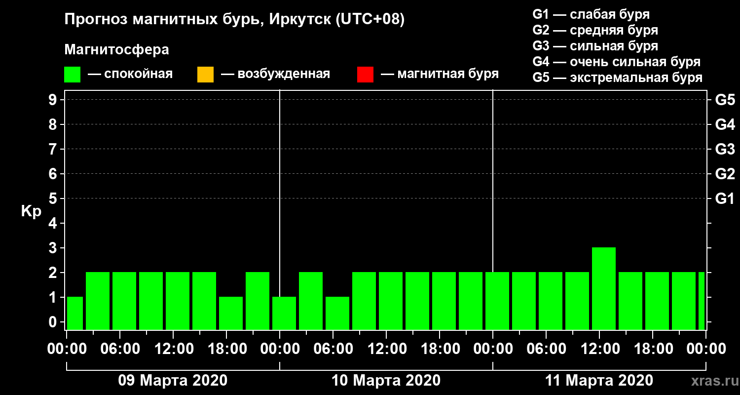 Прогноз магнитных бурь в Иркутске — 9 марта 2020 года