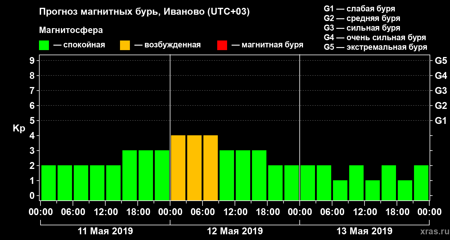 Прогноз магнитных бурь Иваново на 11 мая 2019 года