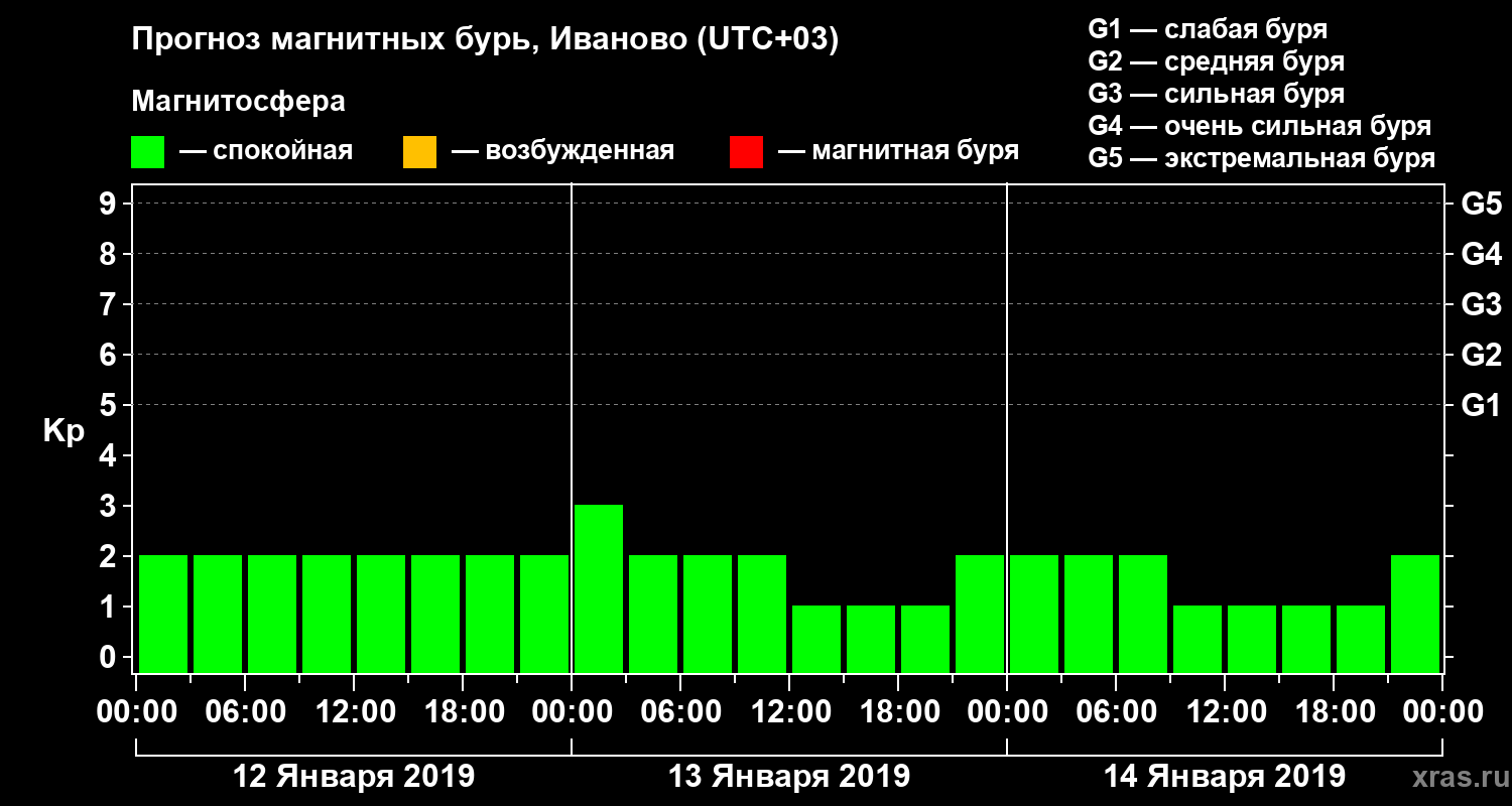 Прогноз магнитных бурь Иваново — 12 января 2019 года