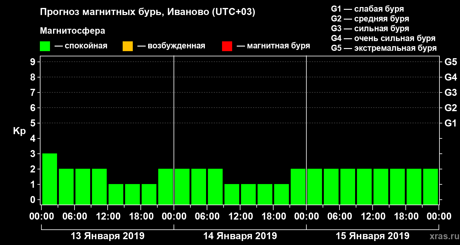 Прогноз магнитных бурь Иваново — 13 января 2019 года